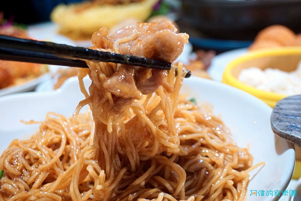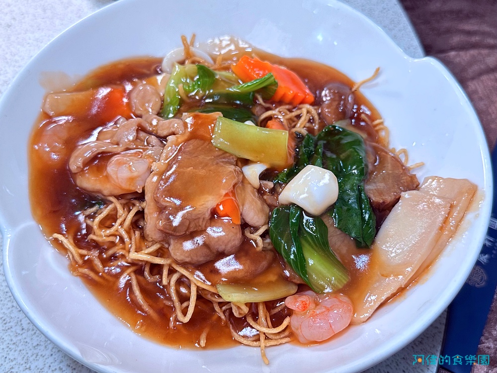 這盤廣州炒麵用料好豐富,有肉片、蝦仁、透抽、青菜,卻只要190元,CP值很高。