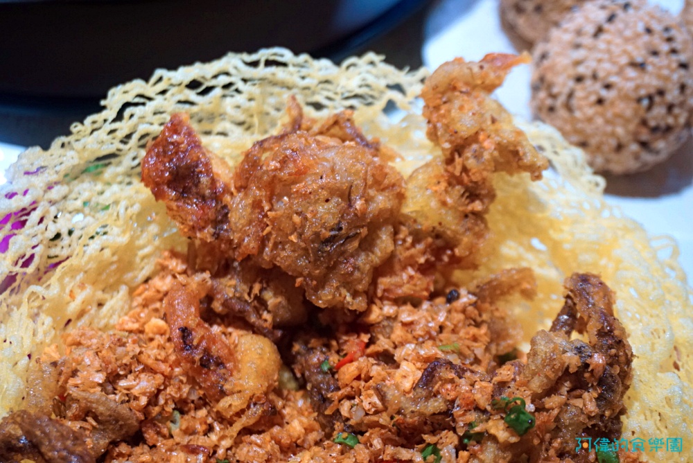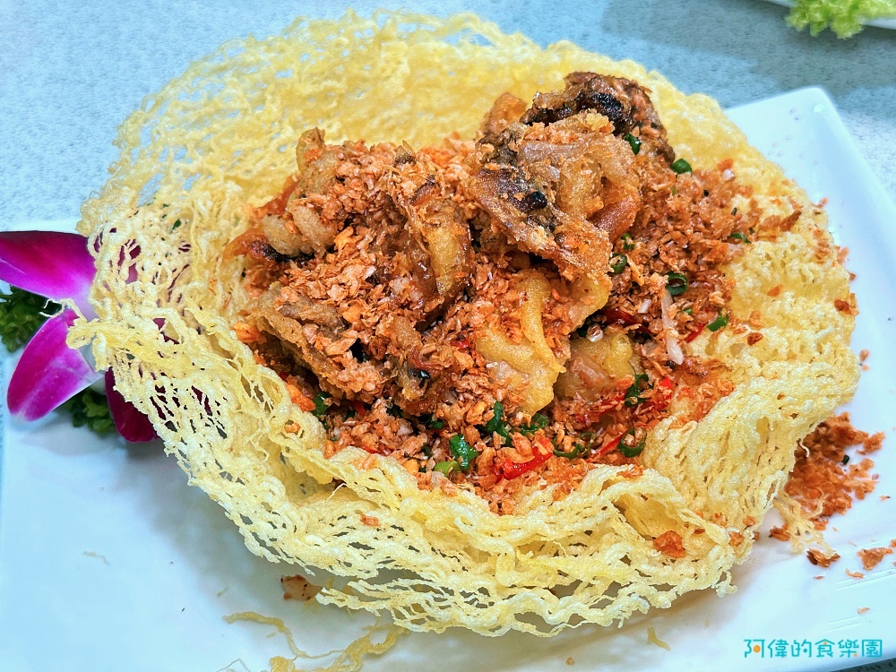 炸得非常香酥的軟殼蟹,帶有蒜酥的鹹香,特別下飯。