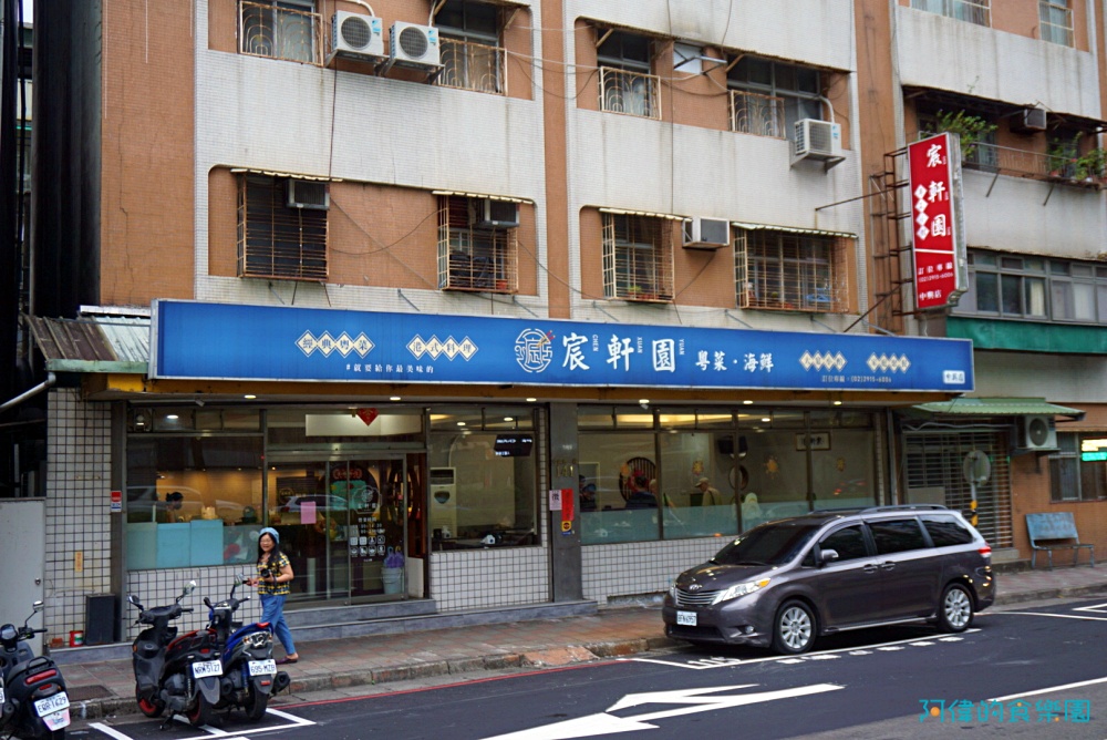宸軒園中興店藍色的招牌非常醒目,透亮的大玻璃窗使得在室內用餐也可看到街景。