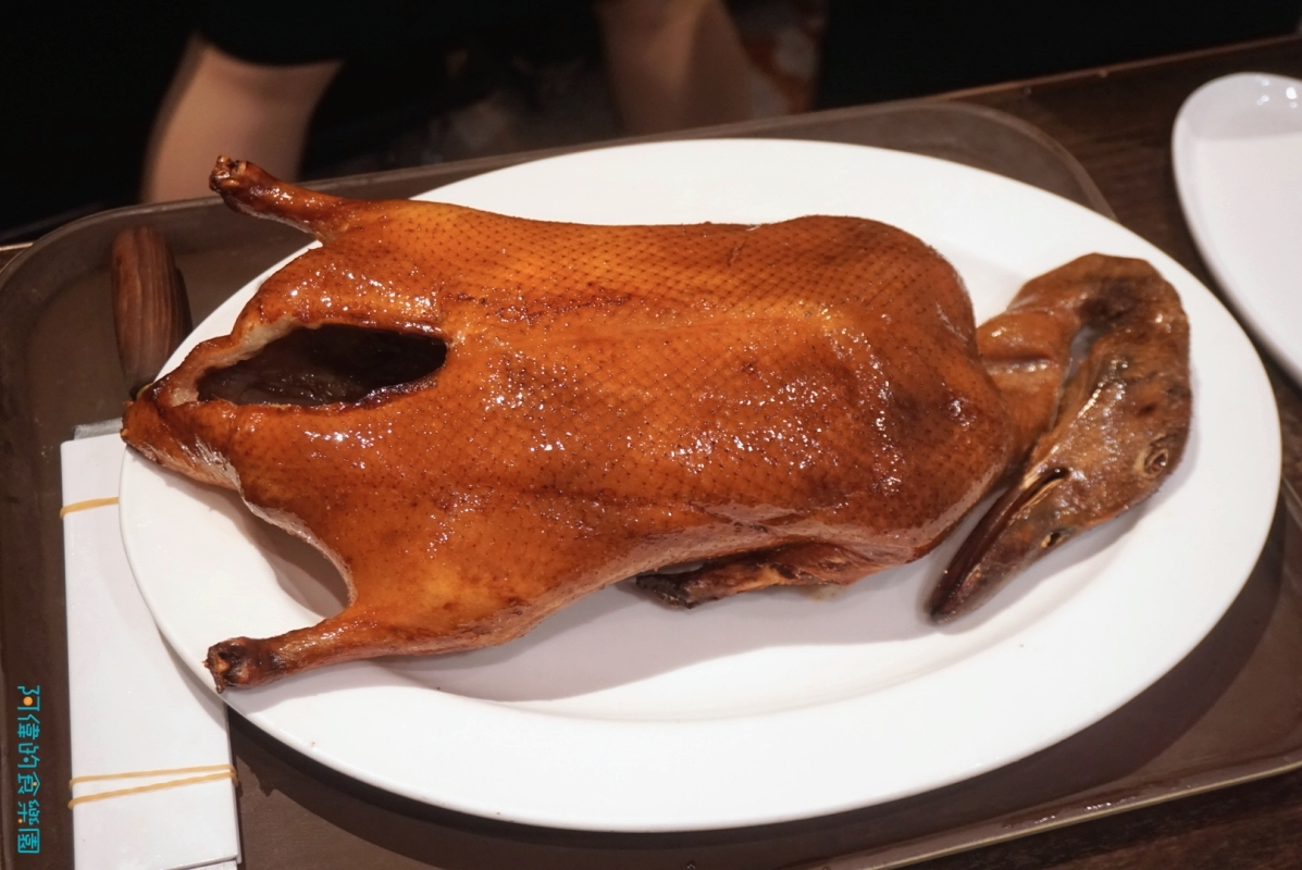 這隻烤鴨非常肥美飽滿,鴨皮烤得相當透亮,色澤閃閃發光太誘人了。