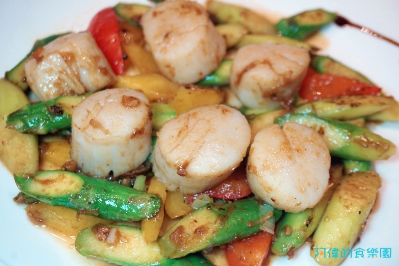 這是一道帶著微辣辛香氣的料理,幾顆碩大的干貝自帶鮮味,跟盧筍的香氣與脆度相輔相成。
