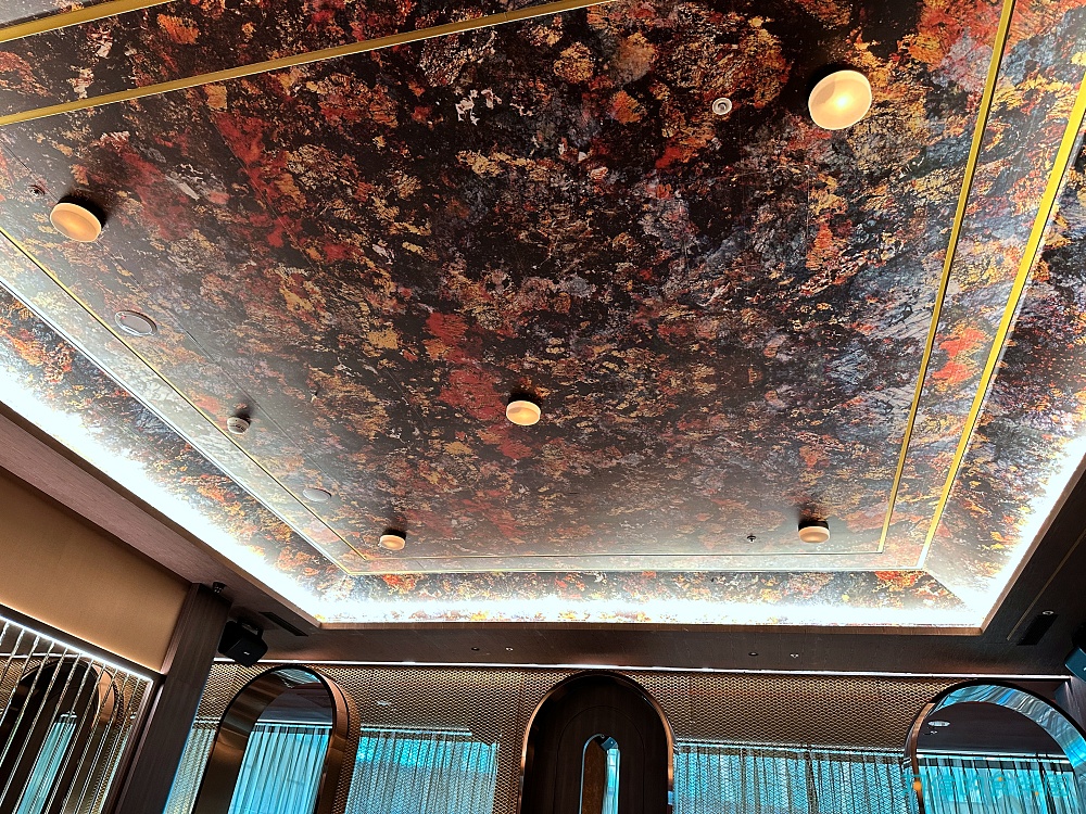 室內天花板的彩繪色彩斑斕,優雅卻有豐富生命力。