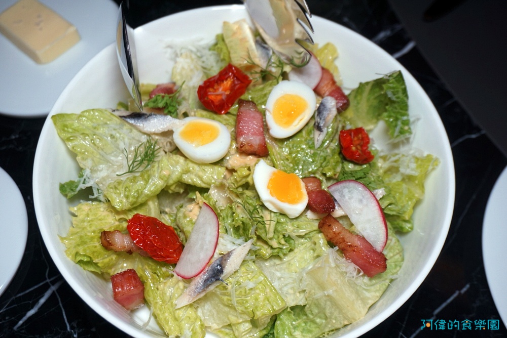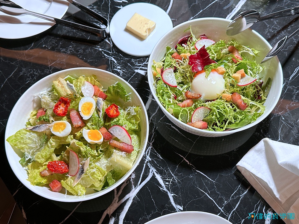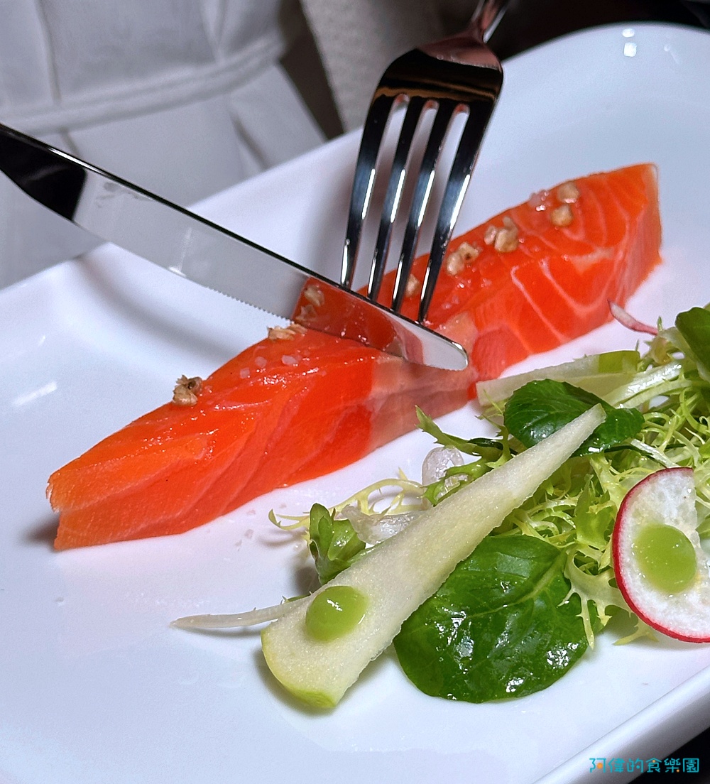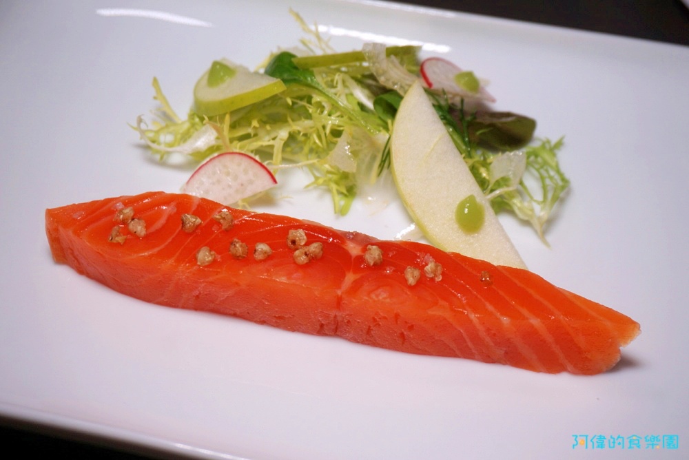 這也是屬於沙拉的品項,多了一整塊來自挪威的手工煙燻鱒鮭,沒有過多的擺盤,卻格外吸引人。