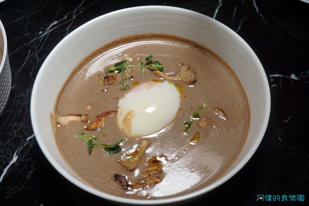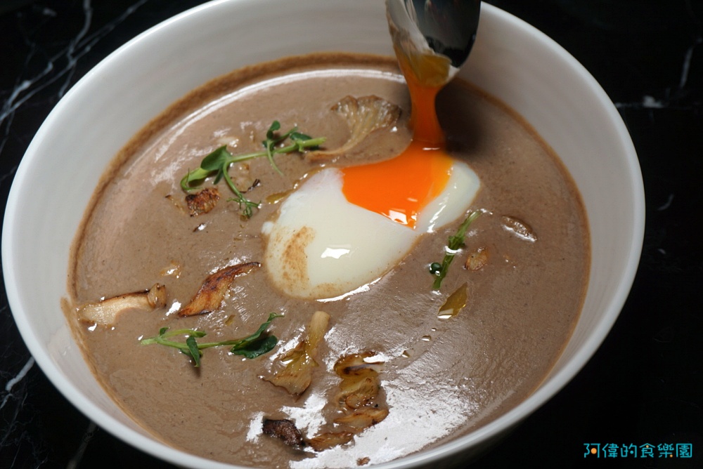 牛肝菌是一種高級野生蕈菇,用來做成奶油濃湯還加了一顆溫泉蛋,用想的就很好喝。