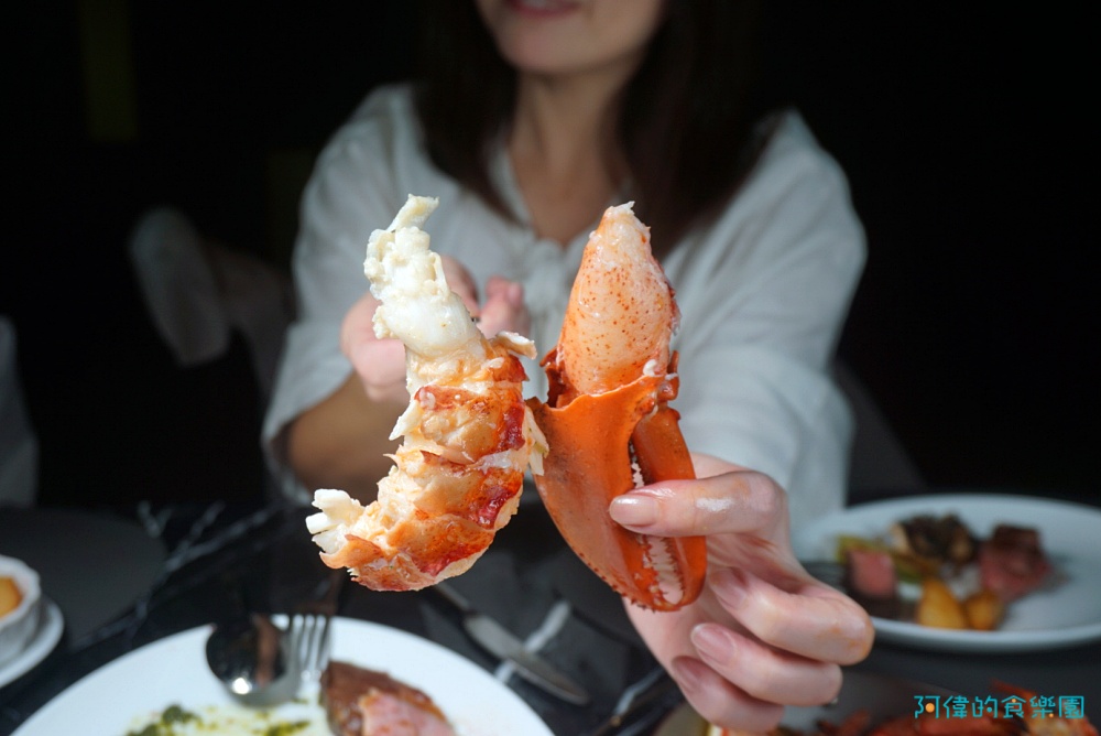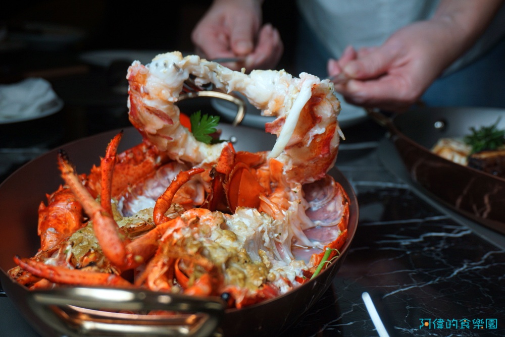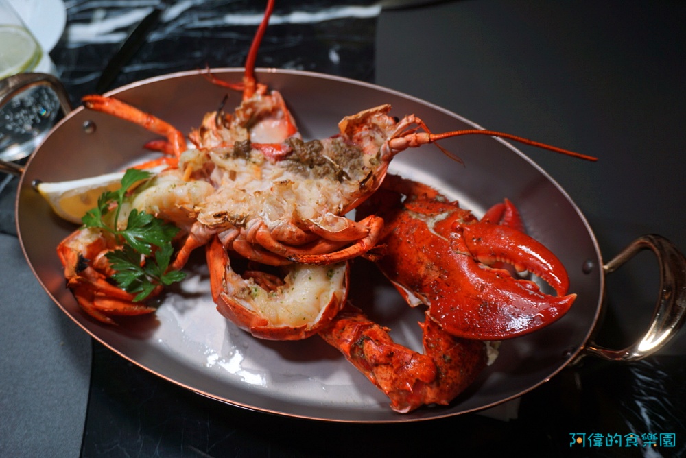 主廚用鮮奶油跟龍蝦一起烤,讓肉質帶有奶油香氣,擠一點檸檬滴在蝦肉上,則增添清爽度。