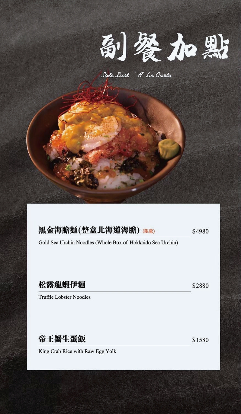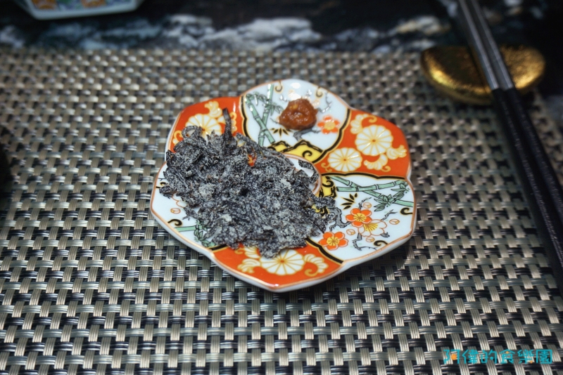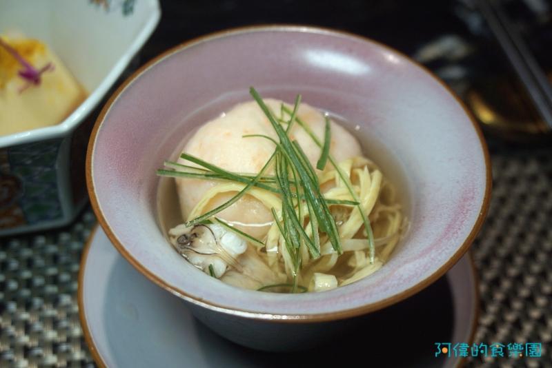 非常有「日本味」的前菜,新鮮的海膽及鹹香的烏魚子粉,加上爆汁的海葡萄,讓這塊細嫩的蛋豆腐味覺口感好豐富。