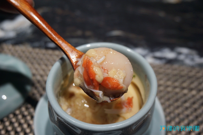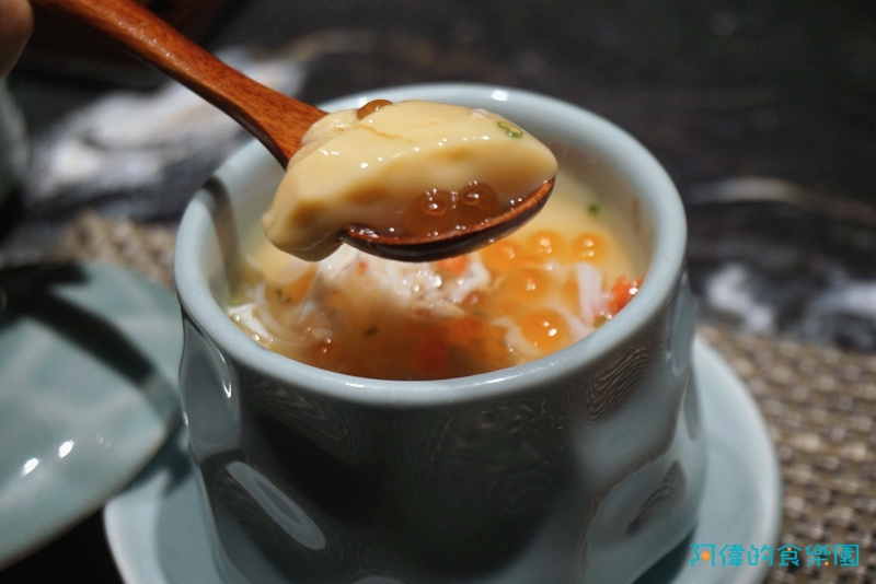 茶碗蒸極為滑嫩充滿蛋香,帝王蟹肉與鮭魚卵增添海的鮮味。