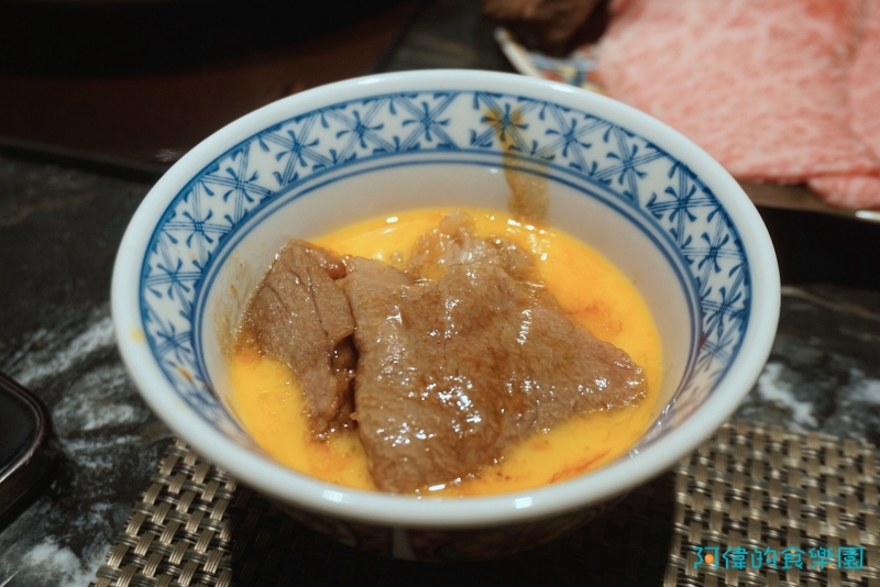 以同樣的方式烹煮至五分熟,沾過蛋液吃進口中,也是超級香甜,只是肉感較明顯,跟米澤牛各有千秋。