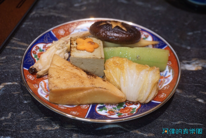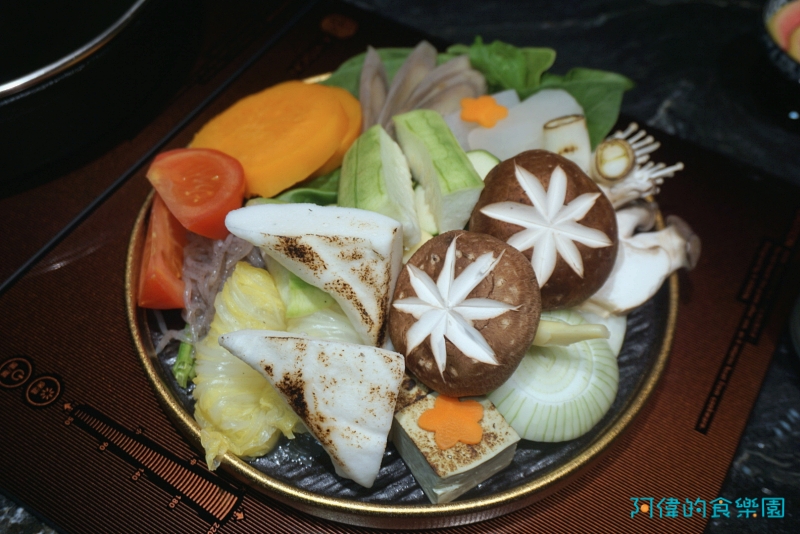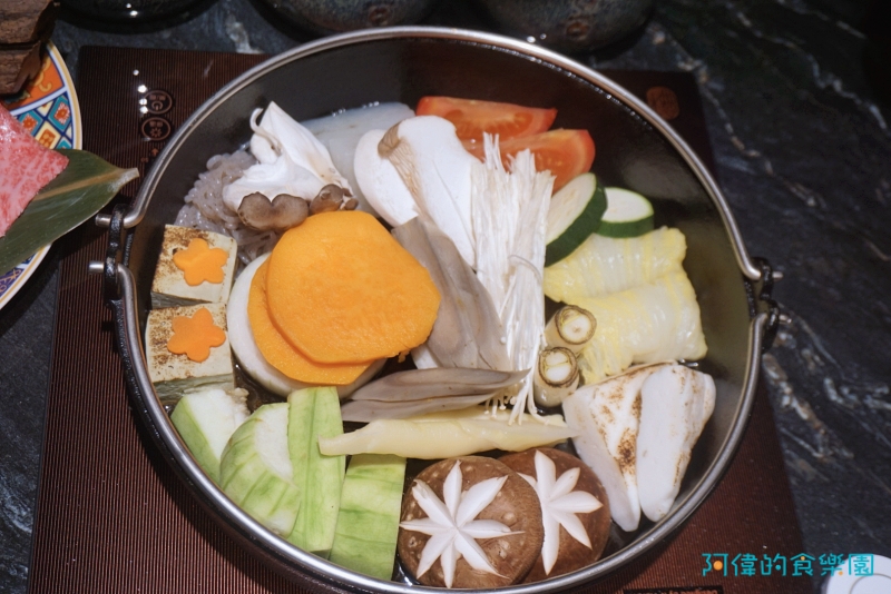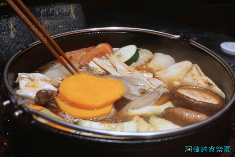 師傅將菜盤裡的食材整齊的排放在鍋裡,不論是胡蘿蔔、牛蒡、金針菇、香菇、或是白菜捲都可以一木瞭然,也可看出師傅對待食材的細心與用心。