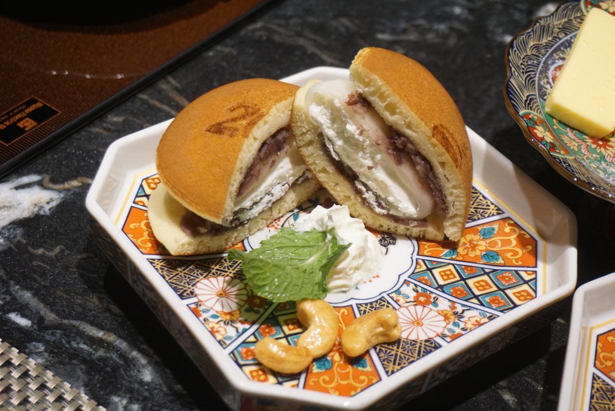 這是道很經典的日式甜點,餅皮鬆軟有奶香,裡面是冰淇淋、紅豆、麻糬,好吃也很有份量!