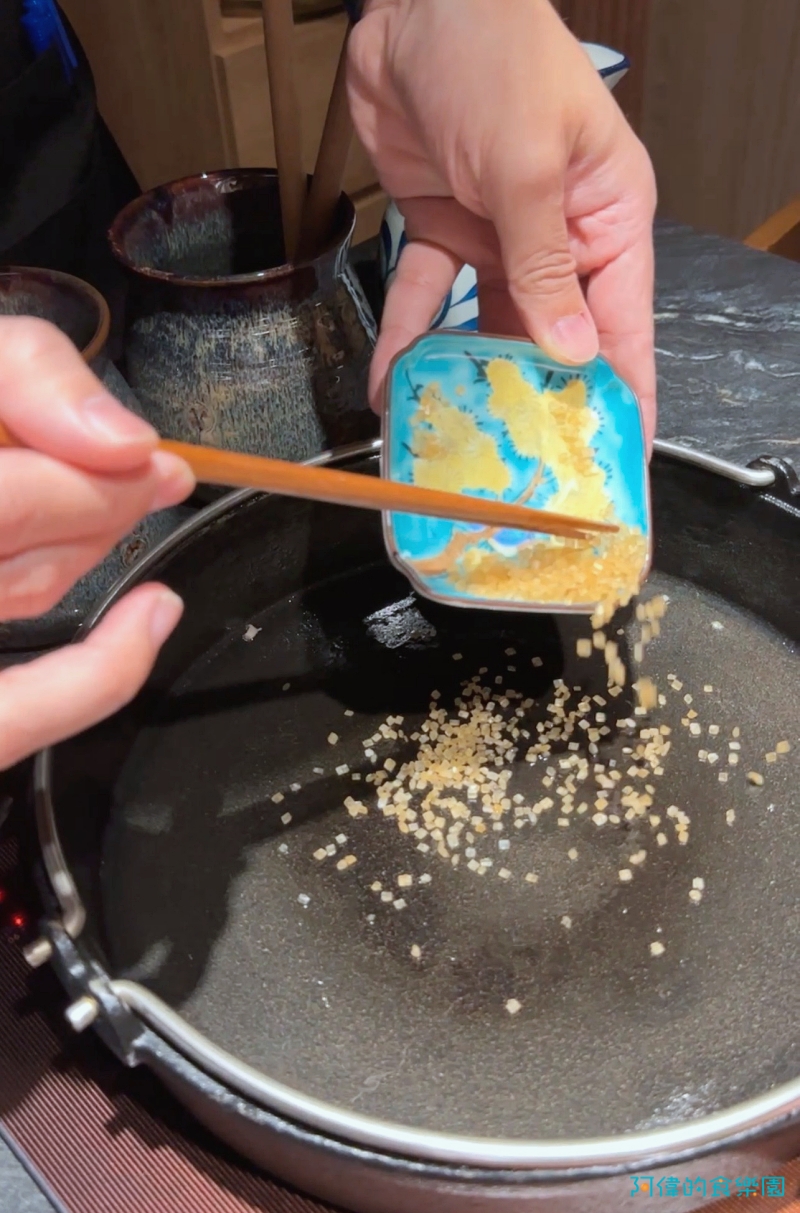 師傅接著將中雙糖倒入鍋中,前面有提過這是美味的關鑑。