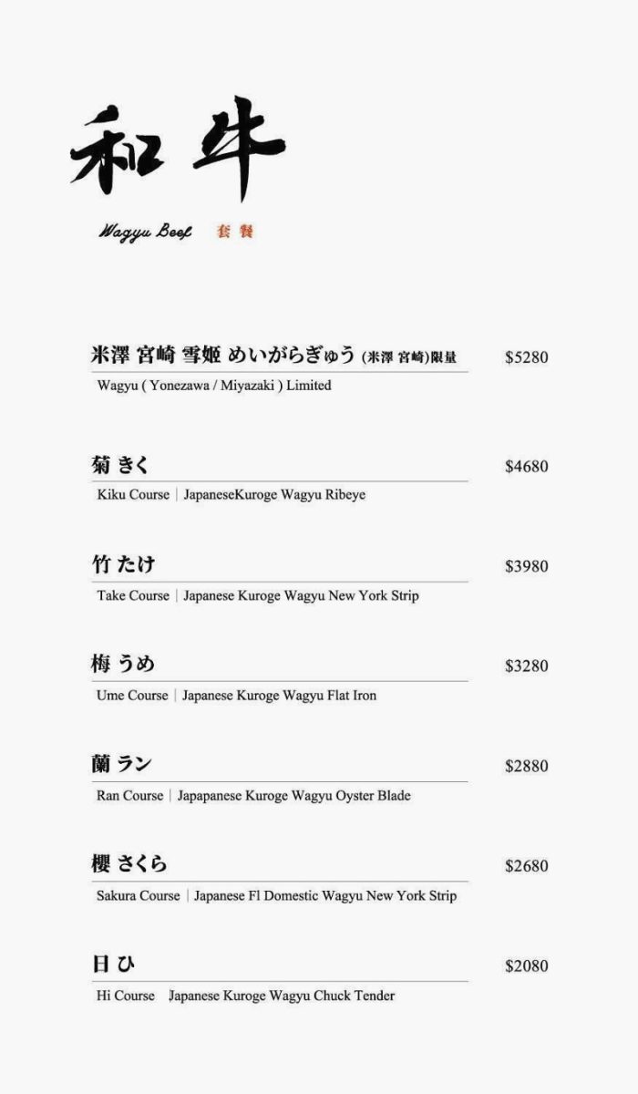 這裡的消費方式是每人一份「套餐」,價格取決於主餐選的和牛,不同種類的和牛有不同的價位。