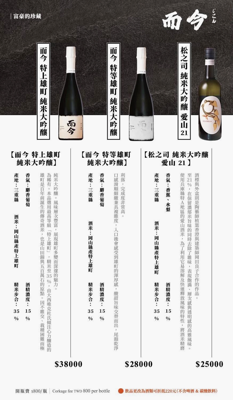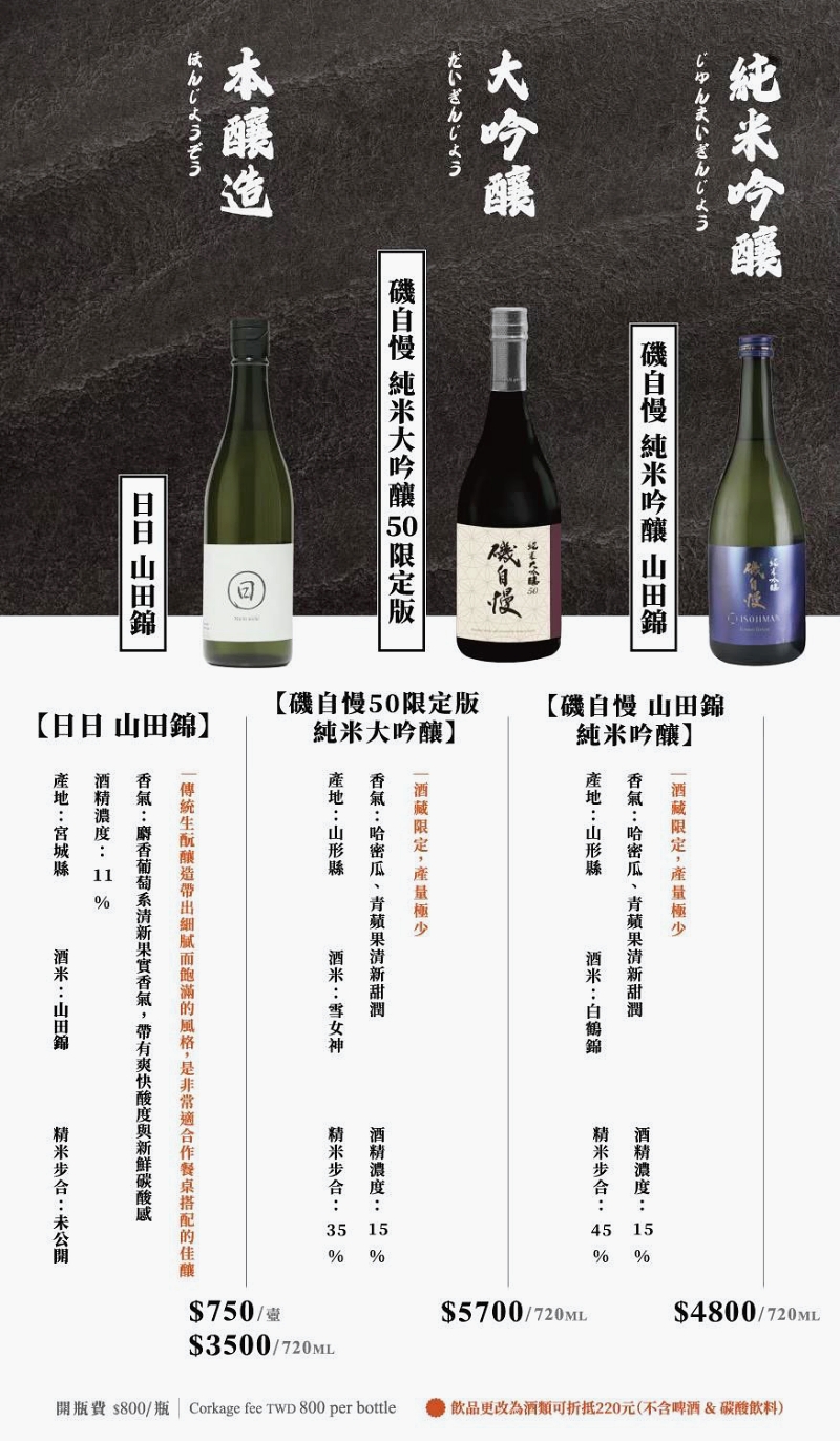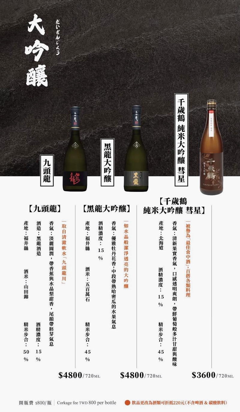 這裡也供應許多高級日本酒。(未成年請勿飲酒、遵守酒後不開車)