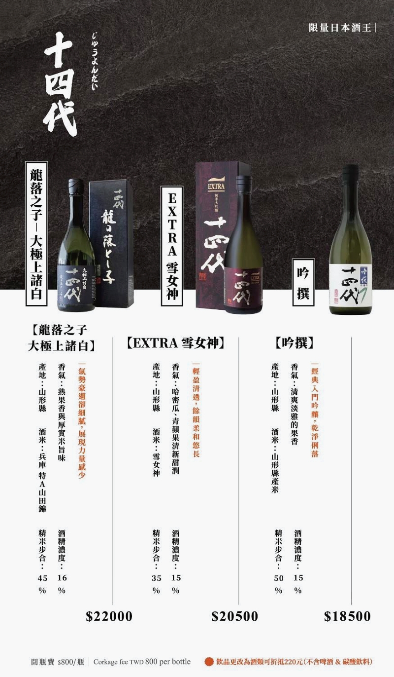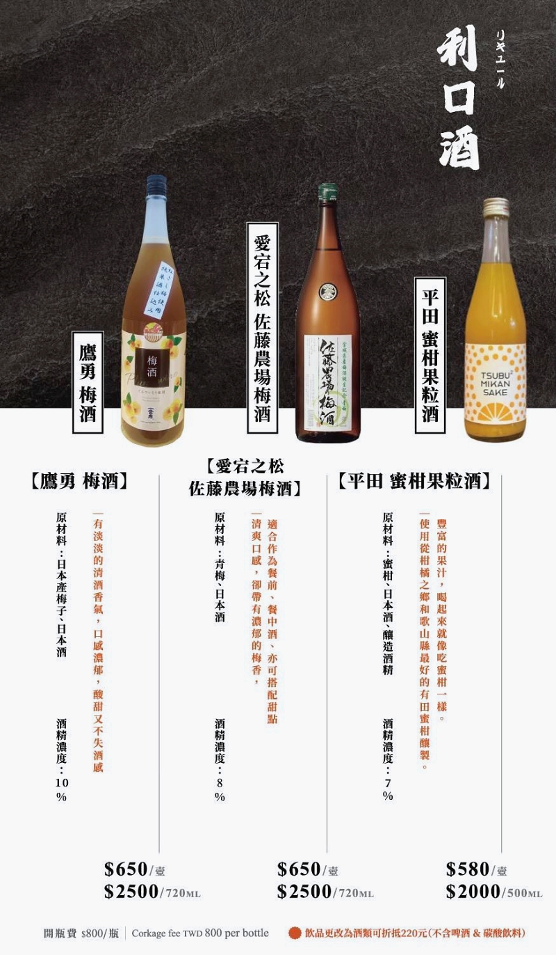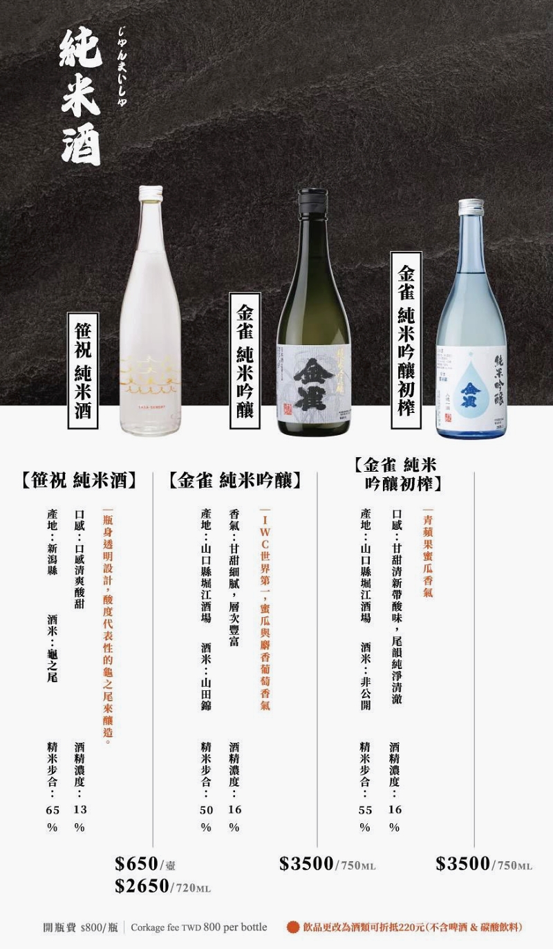 這裡也供應許多高級日本酒。(未成年請勿飲酒、遵守酒後不開車)